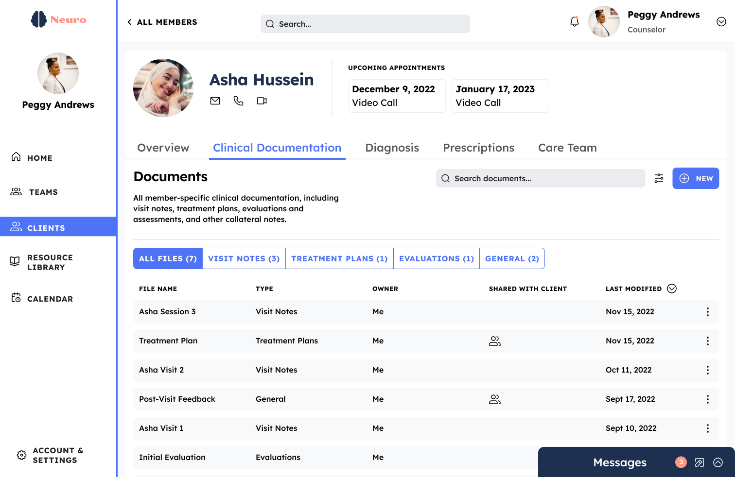 Building on the current scope of work, an onboarding process for both clients and counselors could be built out in order to inform content that is relevant and useful to that person (e.g., demographic information, health history and needs, other account preferences, etc.).